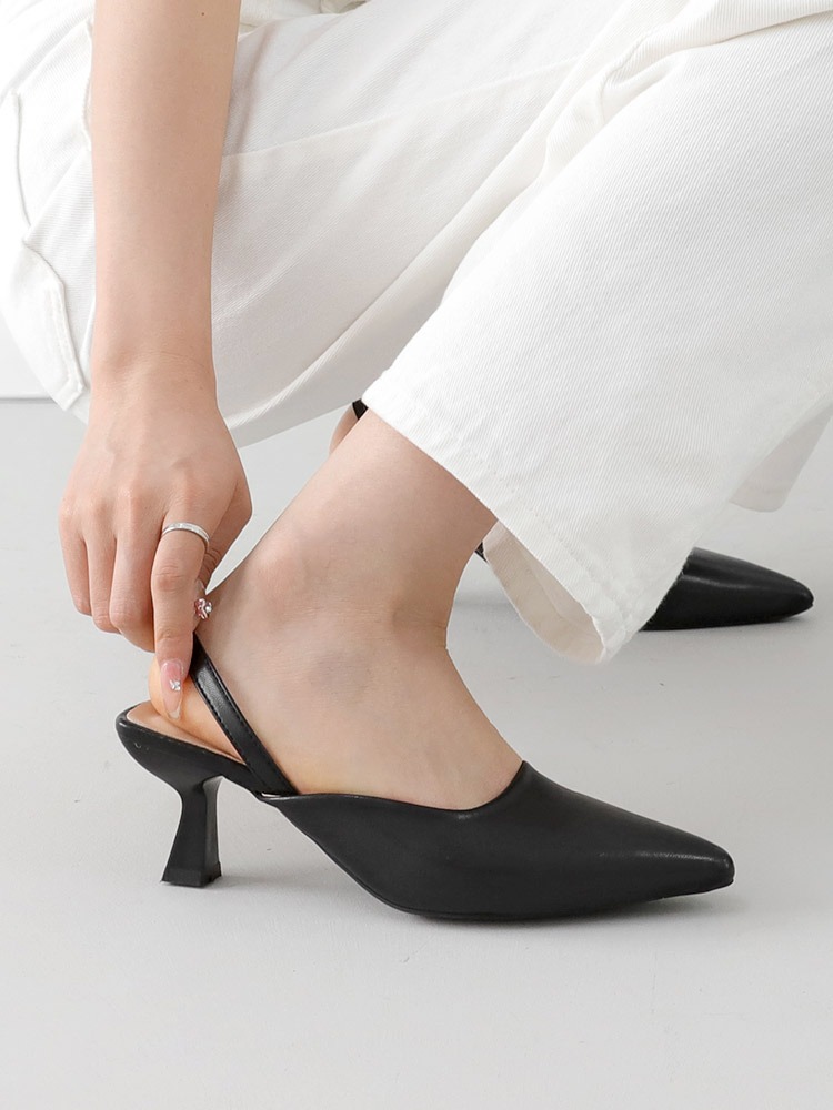애달린 두가지 소재 뾰족코 사각입구 미들힐 슬링백(5.5cm)