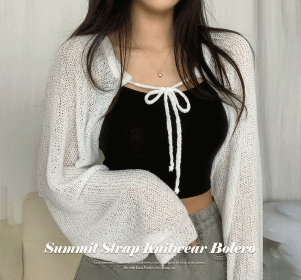 써밋 스트랩 니트 볼레로 6color [부클니트/여름볼레로/니트볼레로/여름가디건/크롭가디건/리본가디건/바캉스니트/시스루니트]