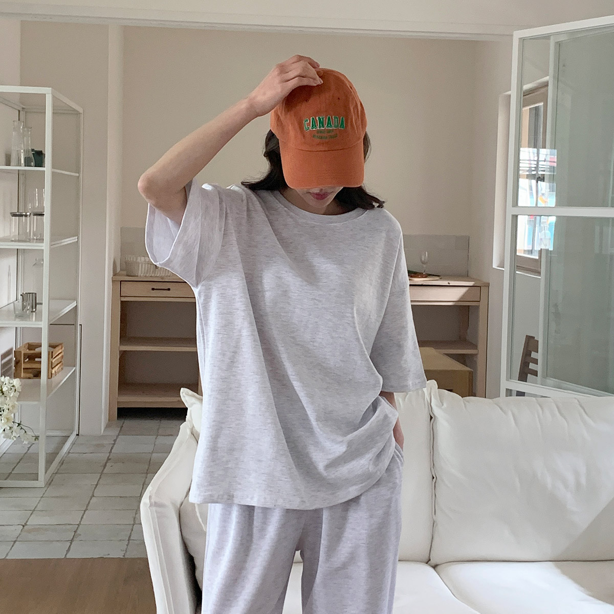 하유브 오버핏 반팔티 와이드 밴딩 조거팬츠 세트