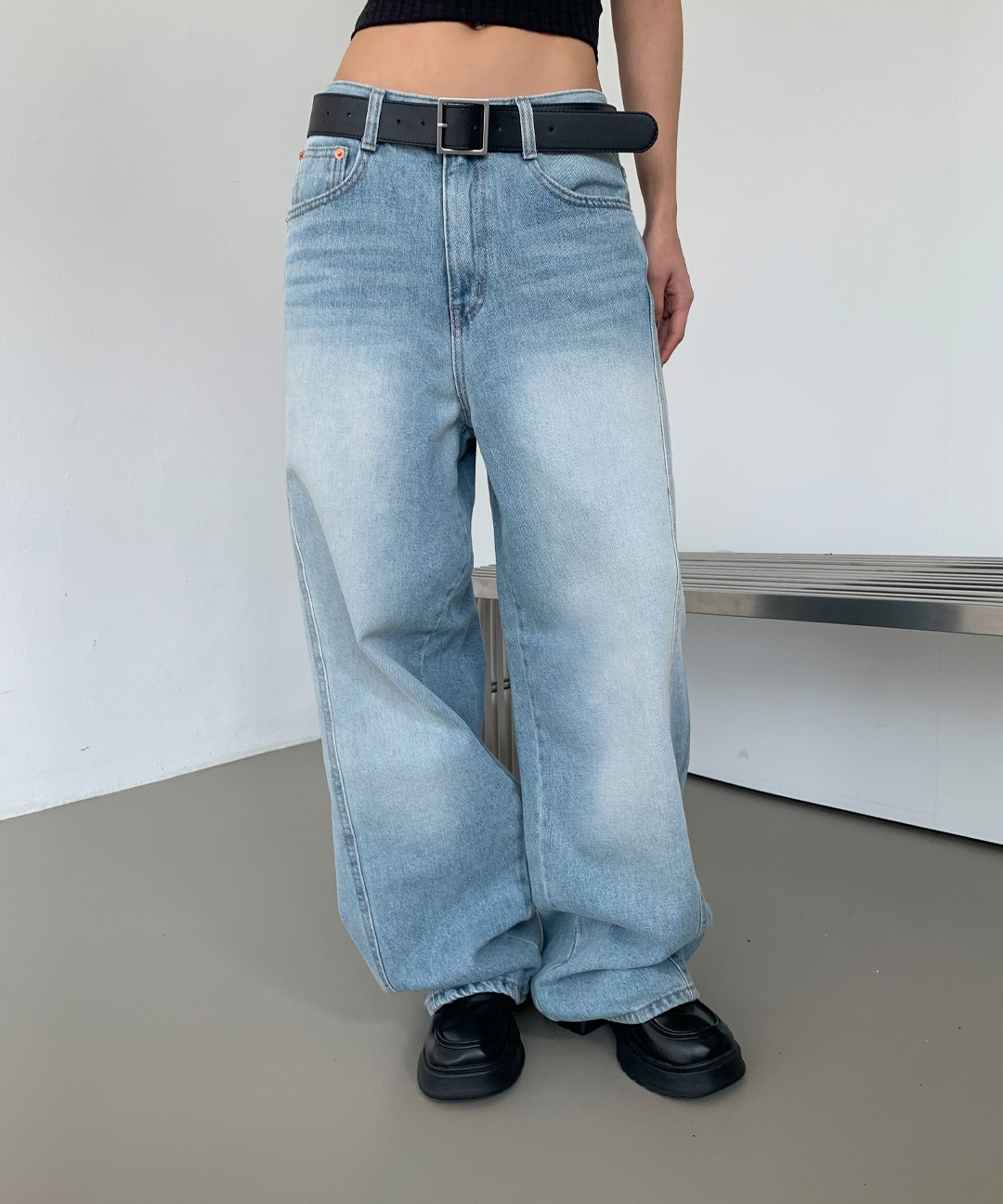 크리젠 라인 와이드 데님 팬츠[연청/절개라인/유니크]