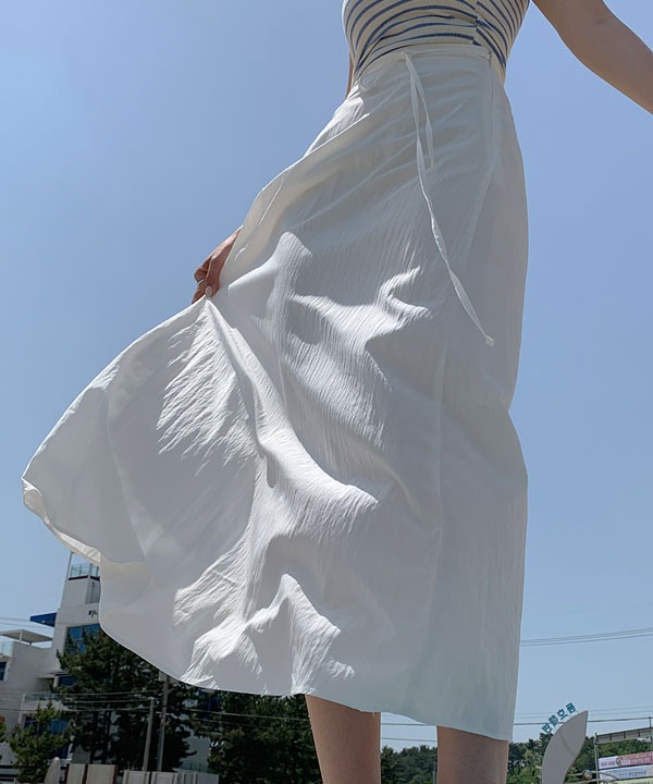 [홀리데이🏝] 스트랩 리본 나일론 롱치마 ; 바스락 플레어 휴양지 인생샷 롱 스커트