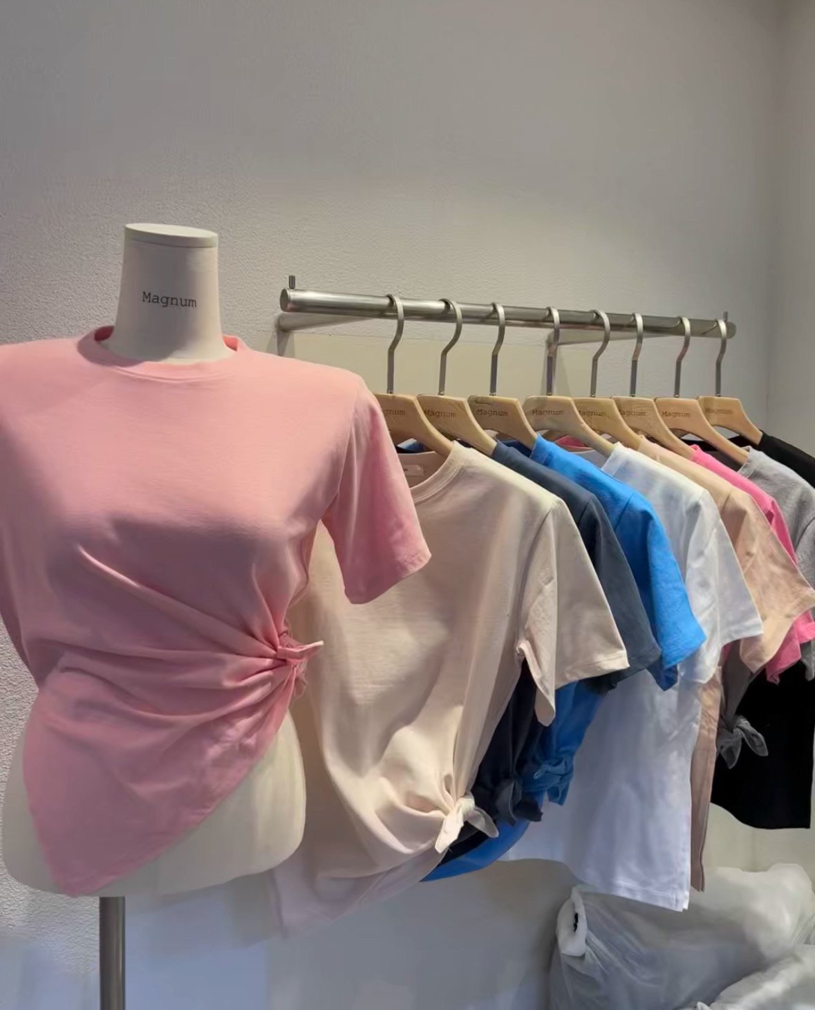 [꾸안꾸/허리잘록] 옆묶음 반팔티