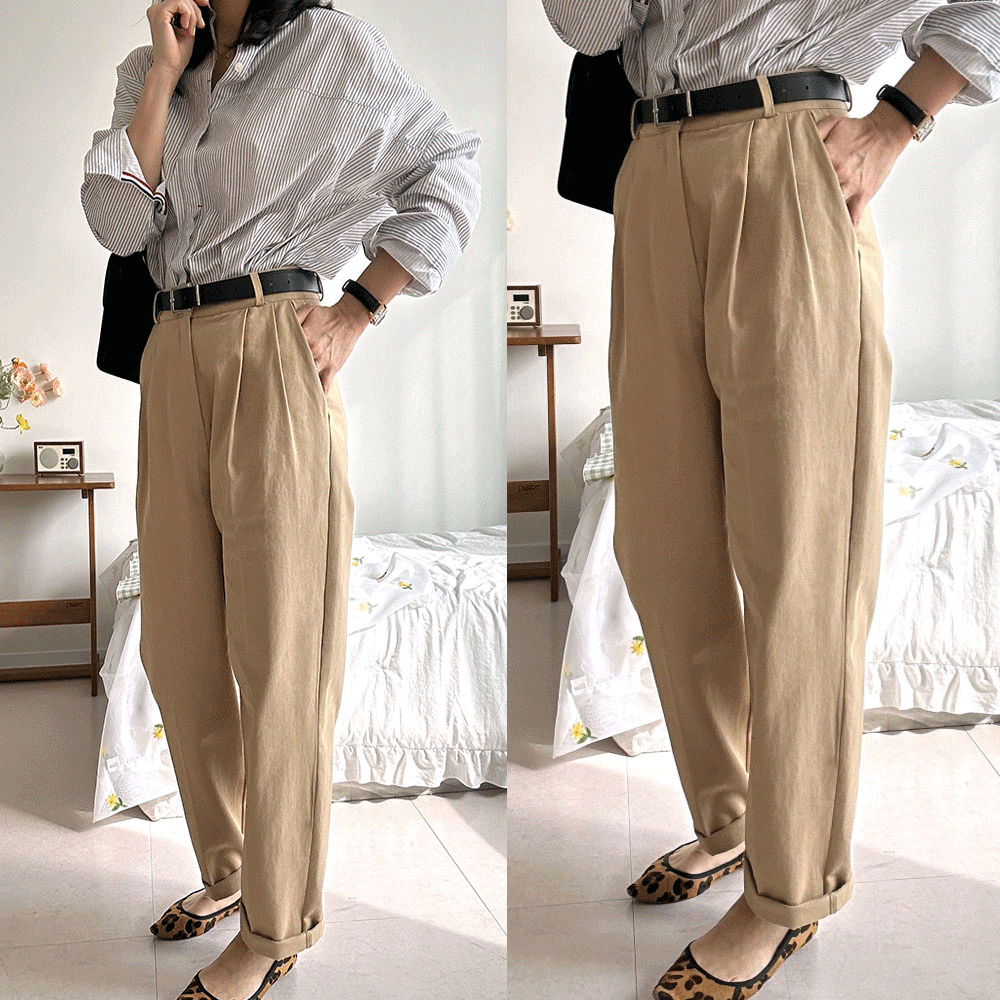 배기팬츠 벨트세트 핀턱 배기바지 흰바지