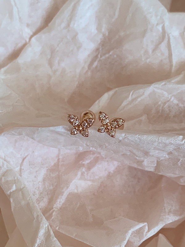 [하객룩💛]14k 미니 큐빅 나비 피어싱 레이어드용 금 피어싱 귓바퀴 아웃컷츠