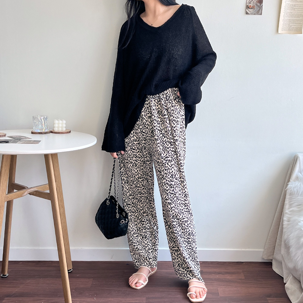 빈티지 호피패턴 와이드 주름바지 빅사이즈 밴딩 플리츠팬츠(3color)/호피플리츠/호피바지/냉장고바지/플리츠팬츠/주름플리츠/주름팬츠