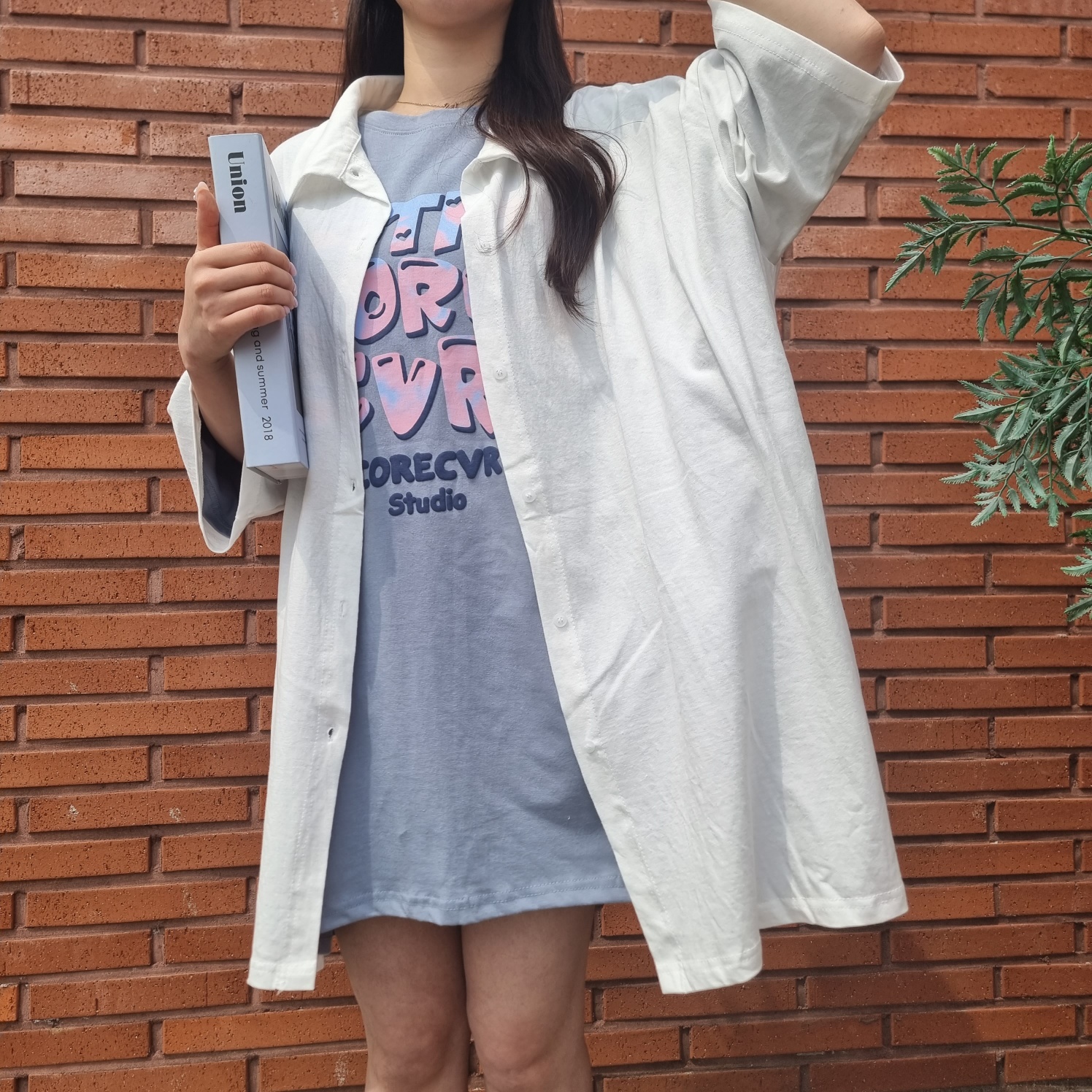 [빅사이즈/~5XL] 롱 카라 코튼 박스반팔티/면ver 가디건처럼 걸치기 좋은 캐주얼여름티 유연한소재!