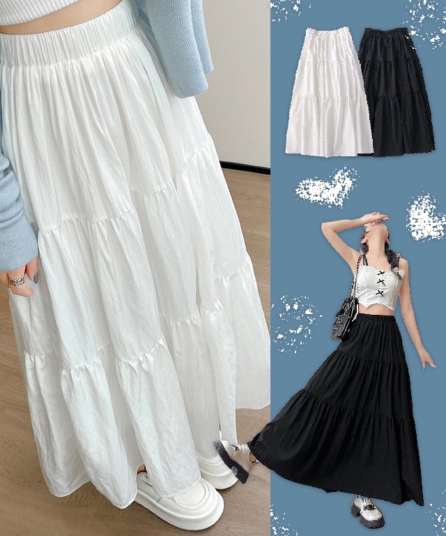 🤍Long🤍 [속바지o/A라인] 쫀쫀한 밴딩 러블리 캉캉 롱스커트 2color // 여리여리 휘뚜루마뚜루 여신 롱 치마 청순 데이트룩 DB~011