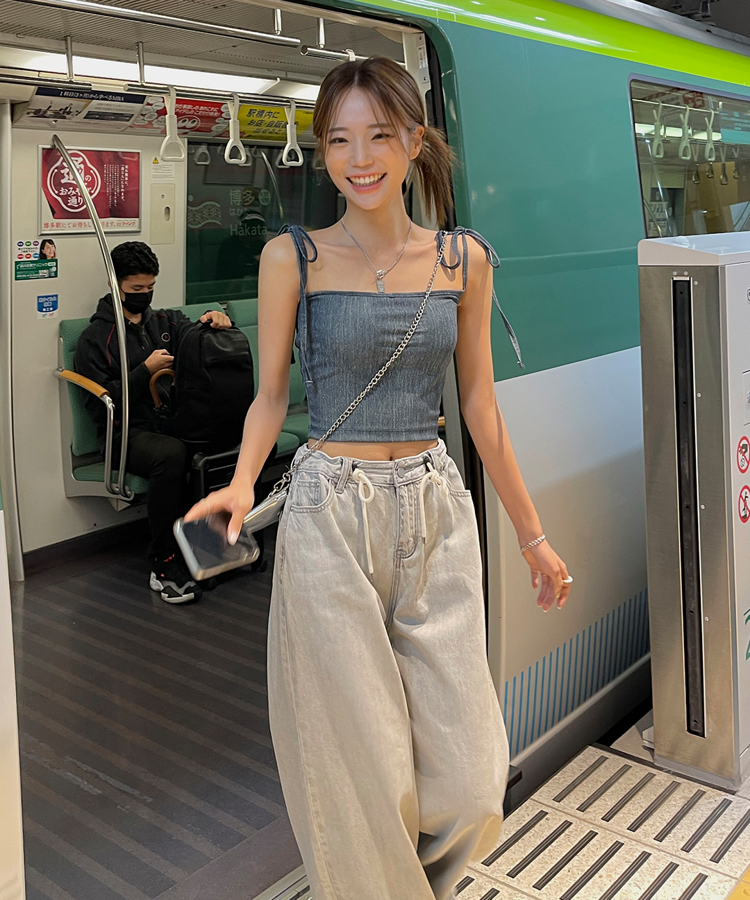 비치웨어 스윔웨어 스트랩 데님 튜브탑 데님탑 끈 나시 탑