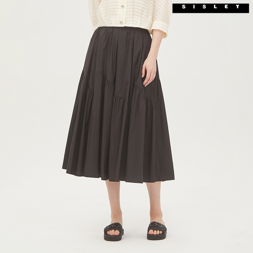 시슬리 샌디 사선 티어드 스커트 SASKC3431_BK