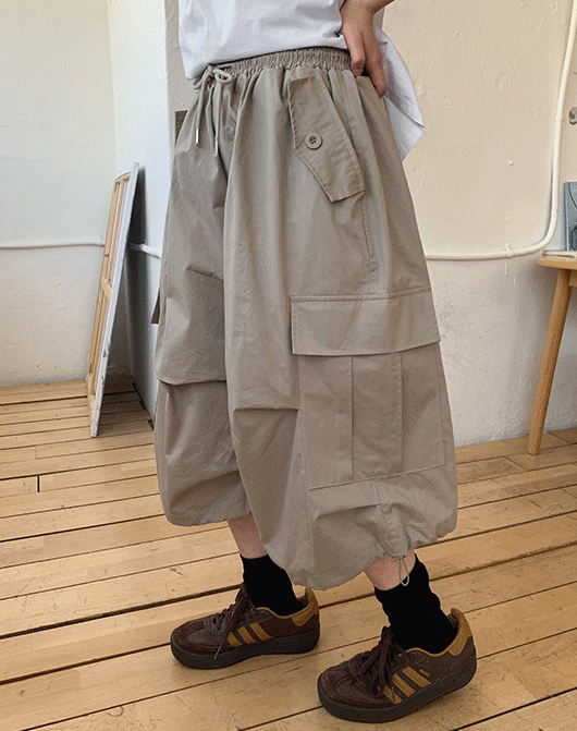 [6천장돌파][unisex] 텐피 스트링 카고 파라슈트 버뮤다 팬츠 (4color)