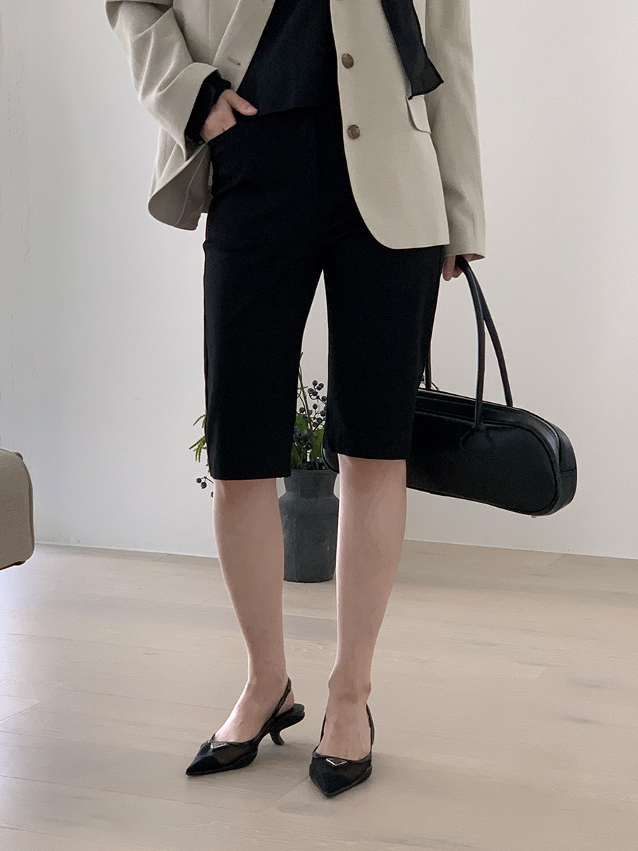 미셀 슬림 스판 뒷밴딩 트임 5부 바이커 팬츠 2color