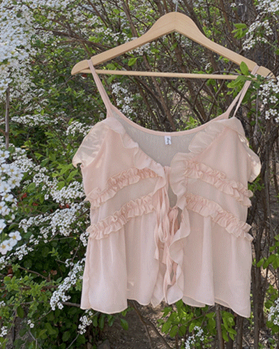 온더 쉬폰 프릴 리본 뷔스티에