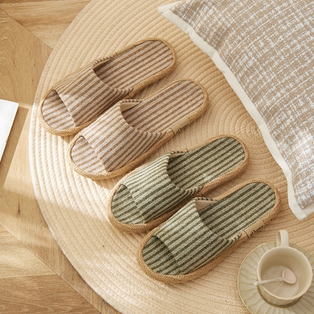프리미엄 린넨 줄무늬 커플 슬리퍼 사무실 거실화 4type