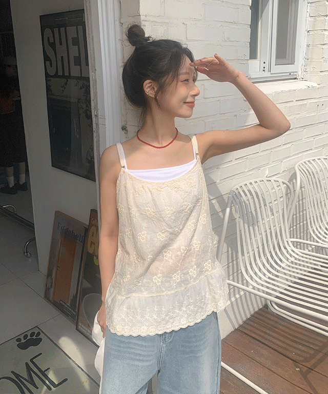 [무료배송] 피카부 플라워 레이스 나시(길이 조절가능)