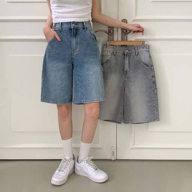 [2단기장/~2XL/뒷밴딩] 릴프 힙 워싱 와이드 카고 하프 버뮤다 여름 5부 청 반바지 데님 팬츠
