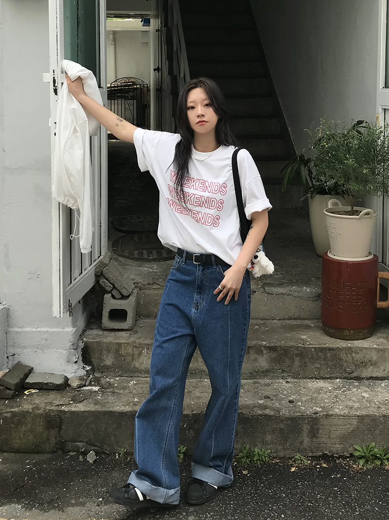 LINE FADING STRAIGHT DENIM (middle blue / dark gray)
