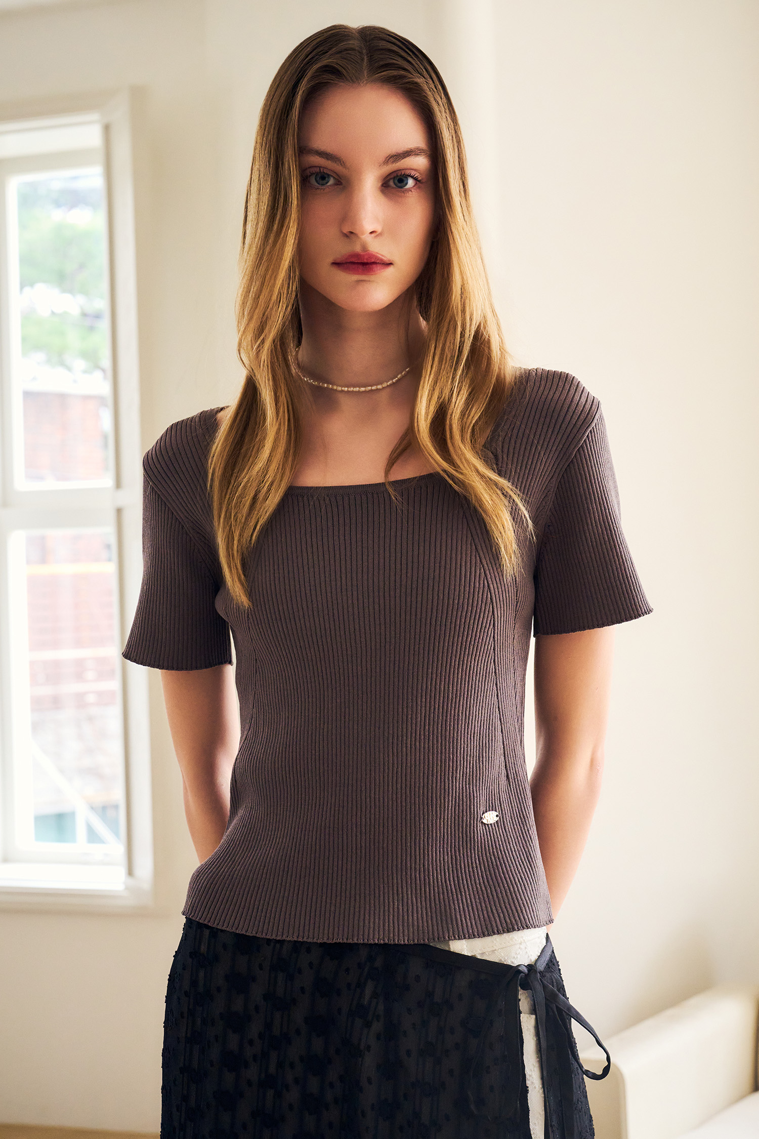 WOMAN 리브드 스퀘어 하프 니트 [CHARCOAL]