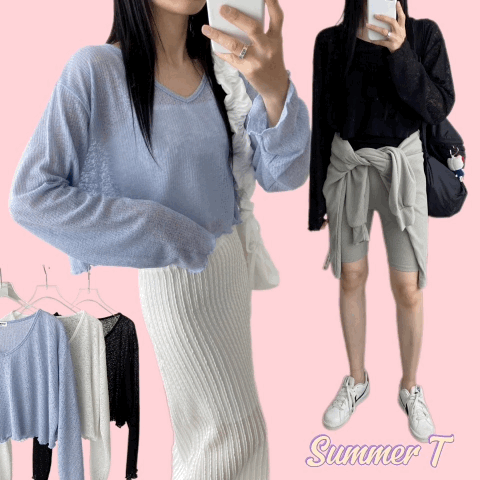 여자흰티 시스루 린넨 세미크롭 파란색 티셔츠 여성쿨티