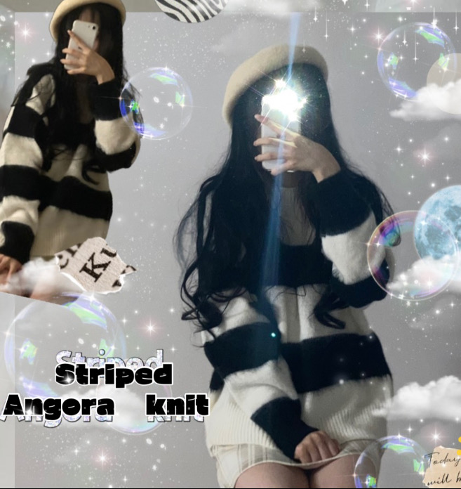단가라 앙고라 오버핏 니트 무채색룩 스트라이프