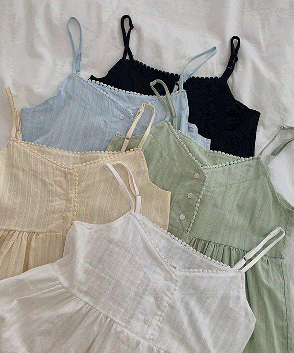[5color💕] 콩알 레이스 미니미 나시 크롭 탑 뷔스티에 레이어드 A라인 플레어 버튼 나시블라우스
