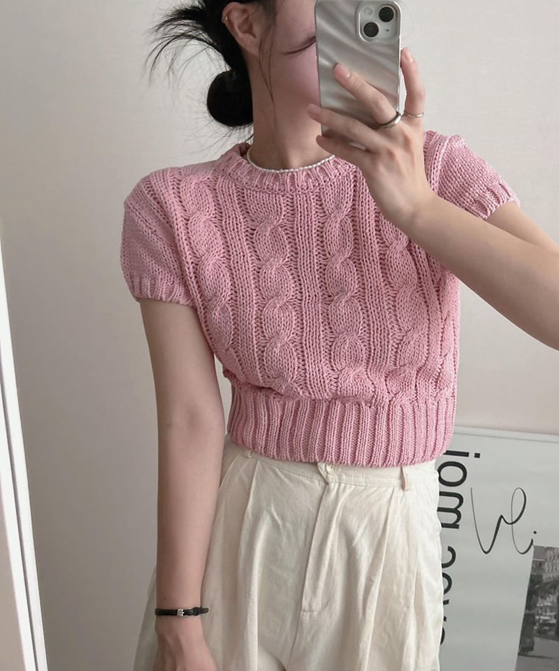 [봄데일리/4color] 코이 꽈배기 뜨개 짜임 반팔 니트