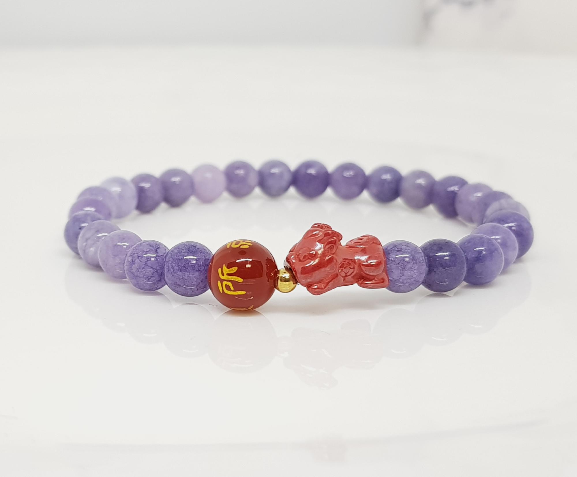 경면주사 보라 옥 칼세도니 원석 염주 빨간 비휴 재물 액막 행운 커플 여자 삼재 부적팔찌