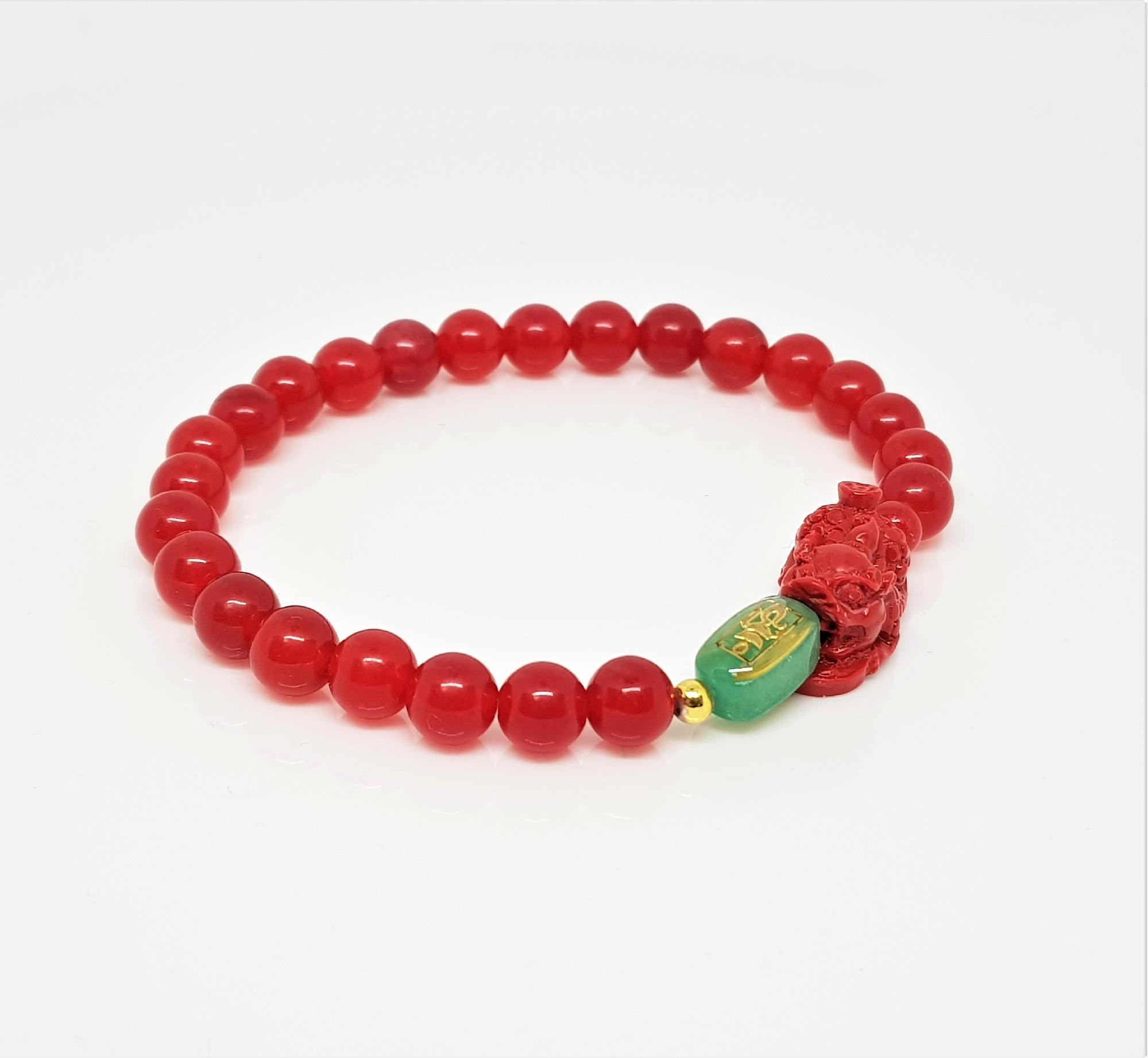 홍옥 옥팔찌 붉은 빨간 경면주사 비휴팔찌 재물 액막 행운 커플 여자 삼재소멸 부적팔찌
