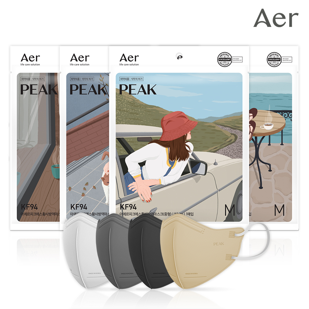 [아에르 공식] KF94 피크 마스크 25개입 (M,L) 8종 택 1