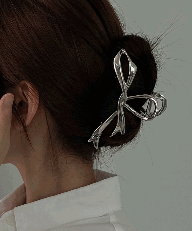 유니크 메탈 리본 매듭 헤어 집게핀 (실버집게핀)