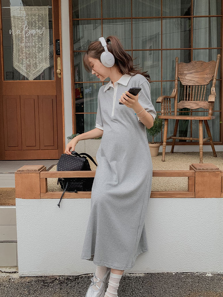 [Made.H] 임부복*피케배색 반팔 원피스 (수유겸용)