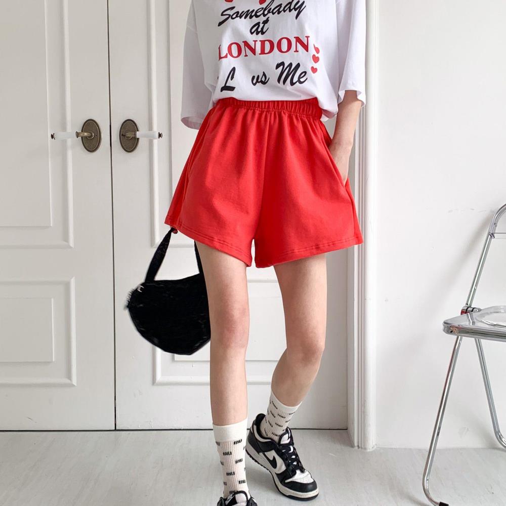 여자 체육대회 와이드 츄리닝숏팬츠 레드 면 반바지