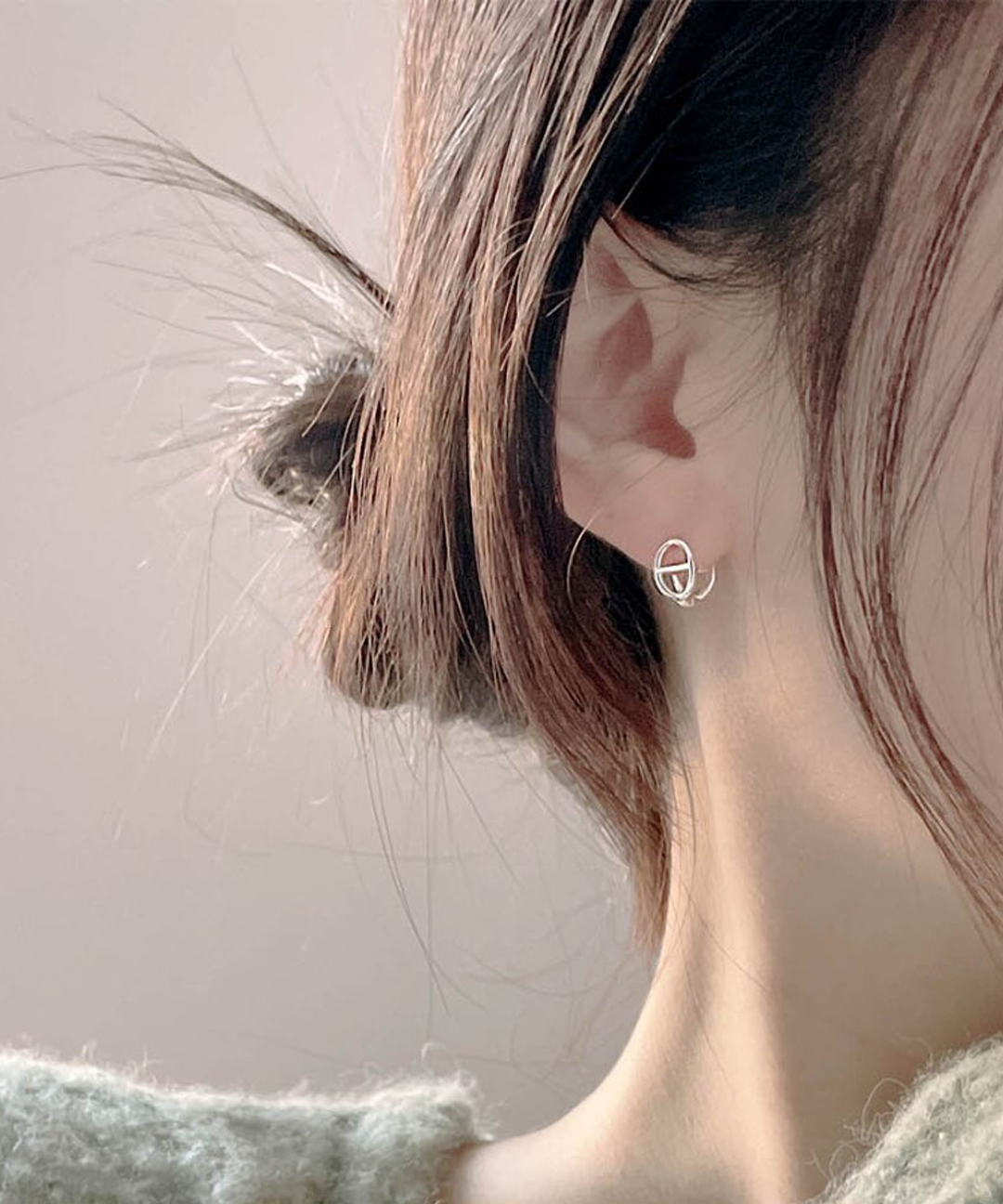 Want 써지컬스틸 타원형 원터치 귀걸이