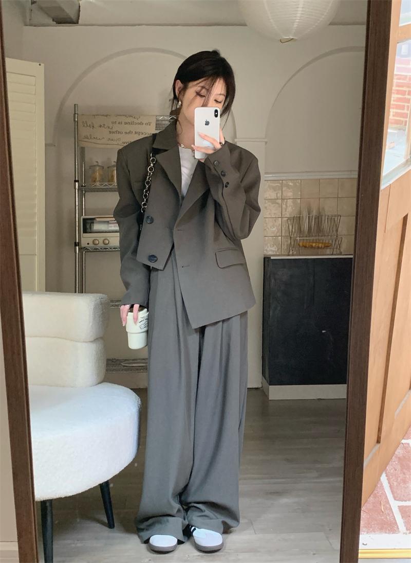 언발란스 블레이저 자켓 와이드 슬랙스 코디