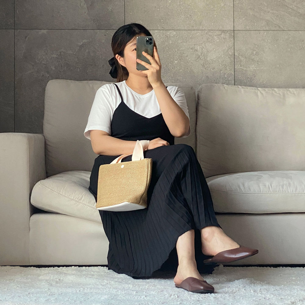 [여리핏 / 데일리룩]77사이즈 플리츠 끈 나시 롱 샤랄라 주름 롱 원피스
