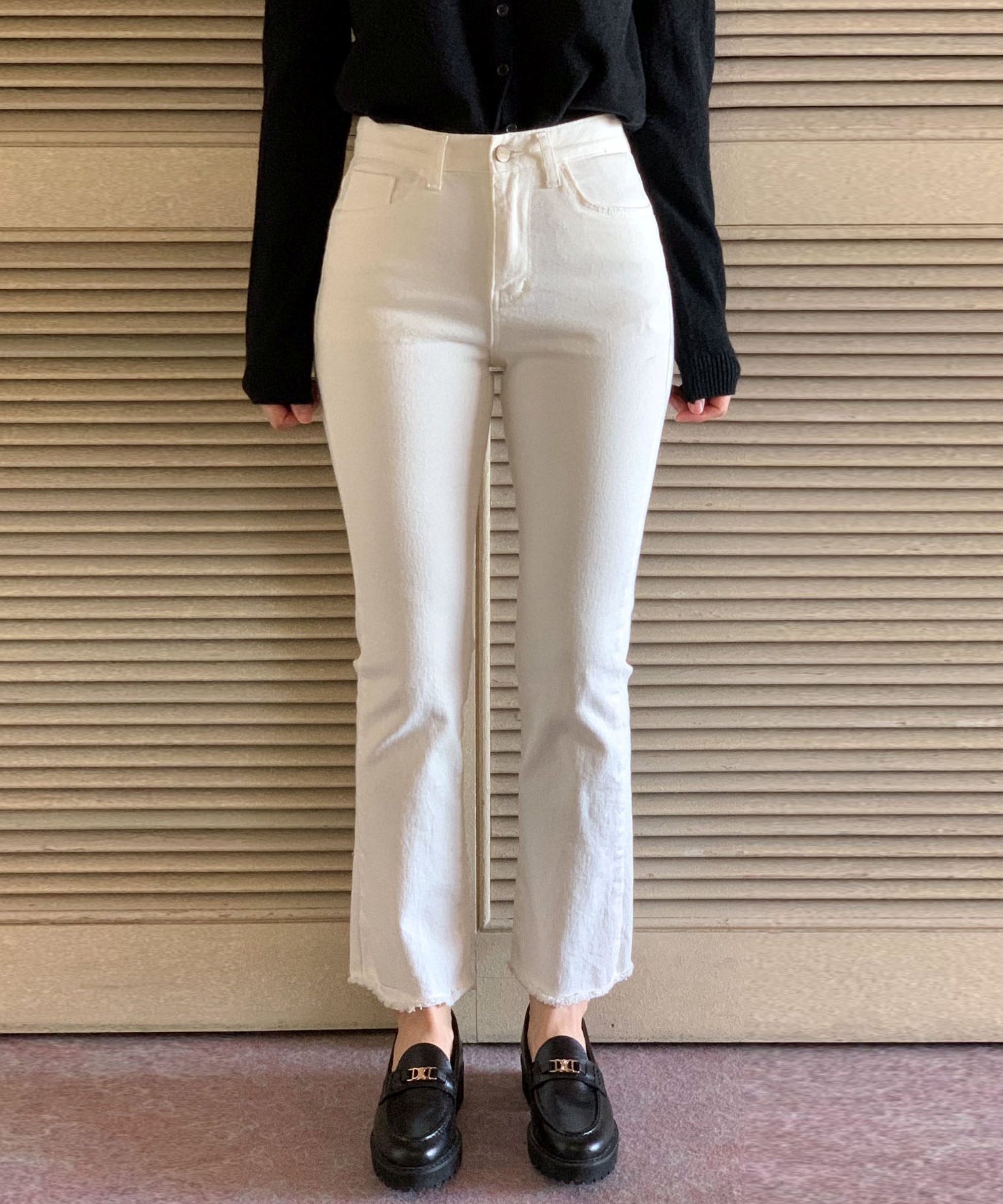 [히든밴딩/쫀쫀스판] 흰바지부츠컷 키작녀부츠컷 면바지 여름 화이트팬츠 9부 슬림핏 흰색 면바지