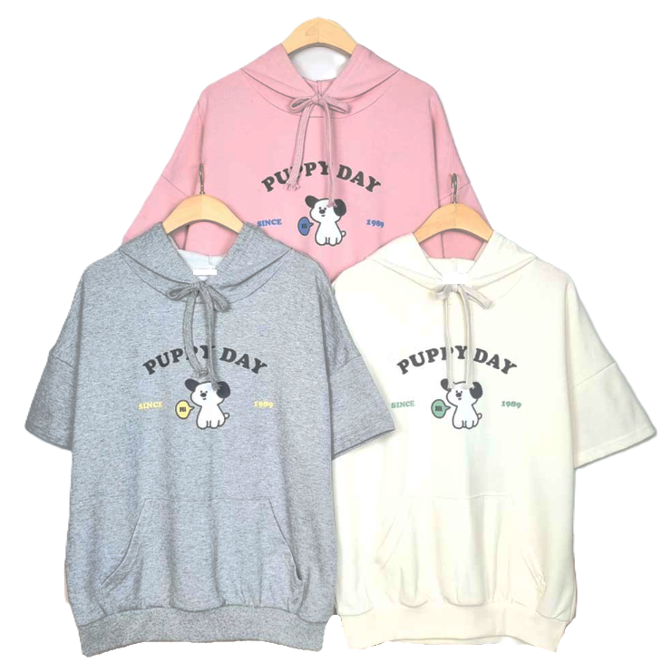 [3컬러] 퍼피데이반팔후드티 후드반팔티 여름후드티 여름반팔후드티 여성반팔후드티 여자반팔후드티 후드티 후드티셔츠 반팔티셔츠 여름 중고등학생 여성후드티 여자후드티 학생반팔후드티