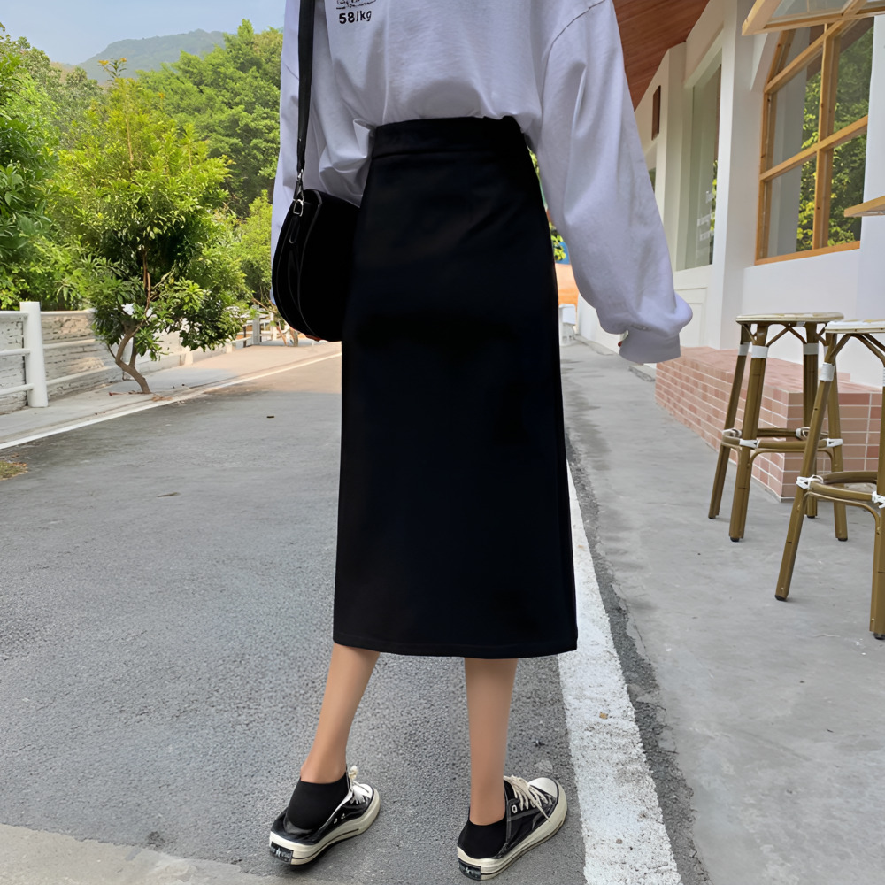 [🚀당일출고/M~L] 유즈 트임 A라인 미디스커트 빅사이즈