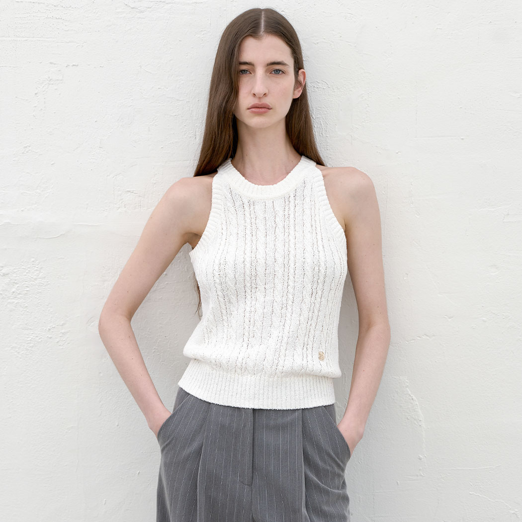 (Z-T-6837)HALTER NECK CABLE KNIT