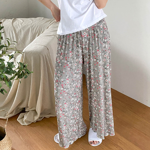 꽃무늬 와이드 플리츠 바지 몸빼 할머니바지