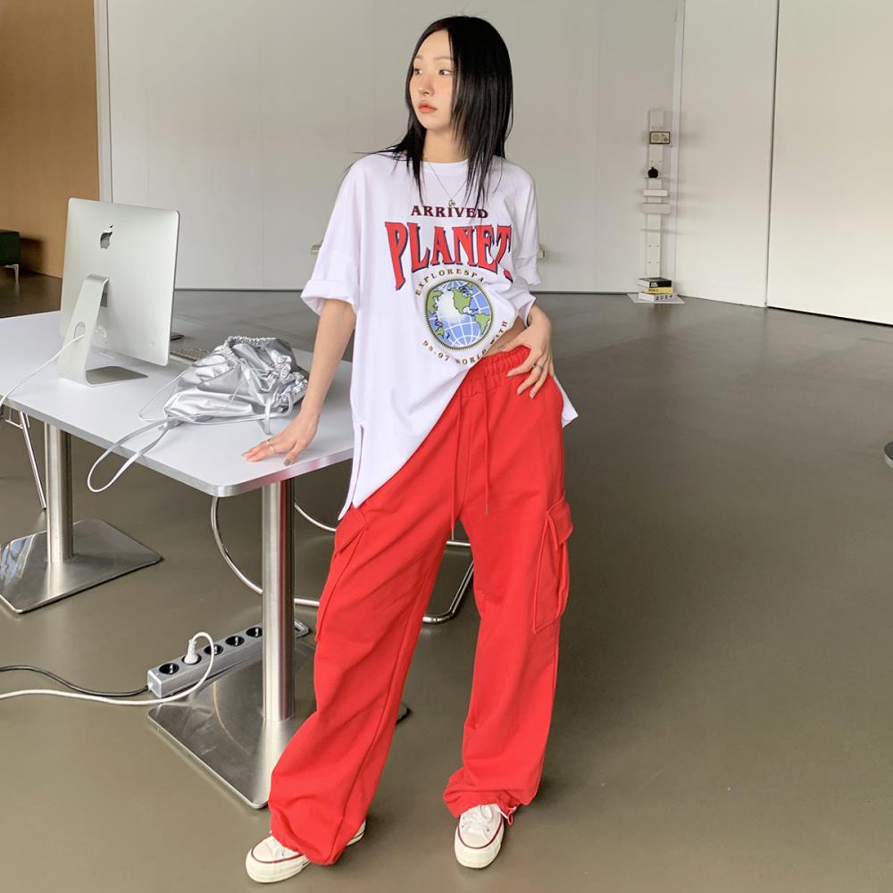 여자 여름 스트릿 밴딩 카고 포켓 밑단스트링 팬츠