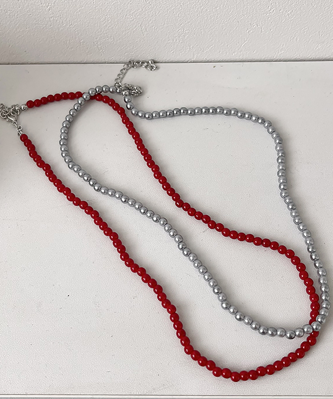 [무배] 컬러 볼 레드 그레이 미니 비즈 목걸이 (2color)