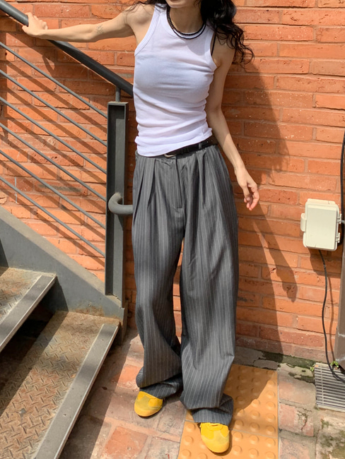 [30%할인/슬랙스] 티주 핀턱 와이드 스트라이프 슬랙스 2color