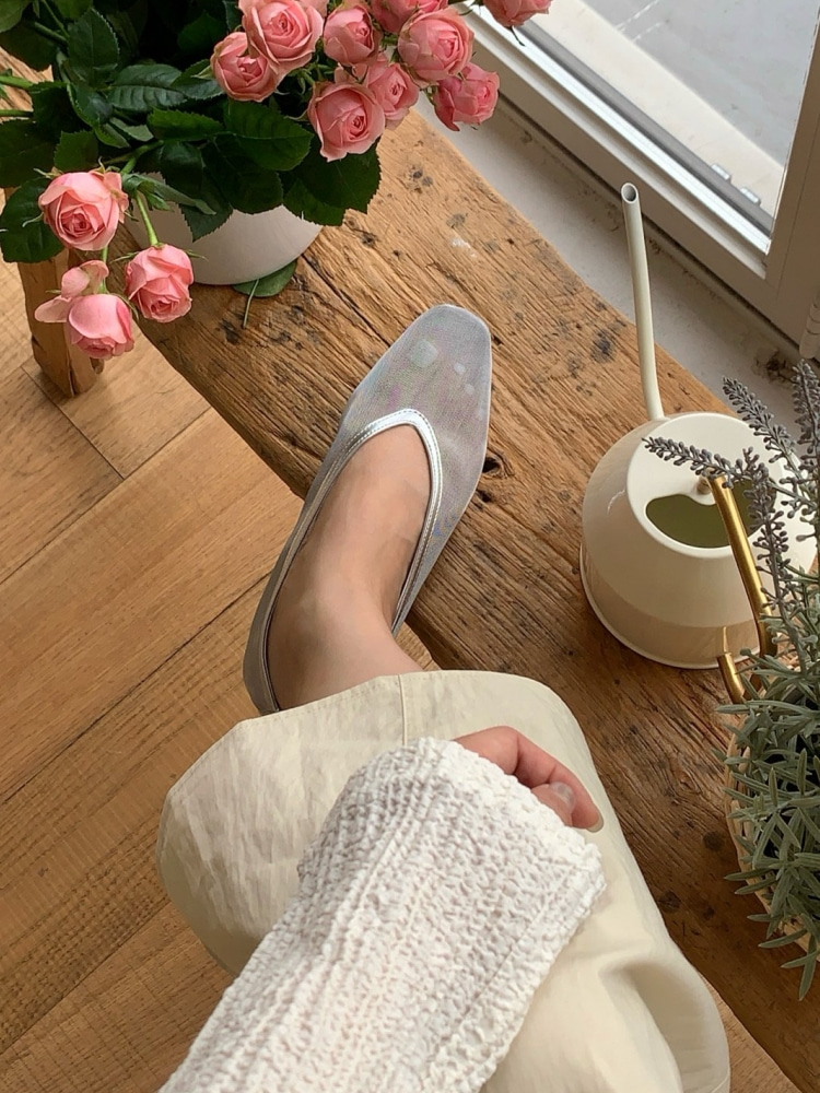 셜리 메쉬 망사 시스루 세미 스퀘어 플랫슈즈 1cm