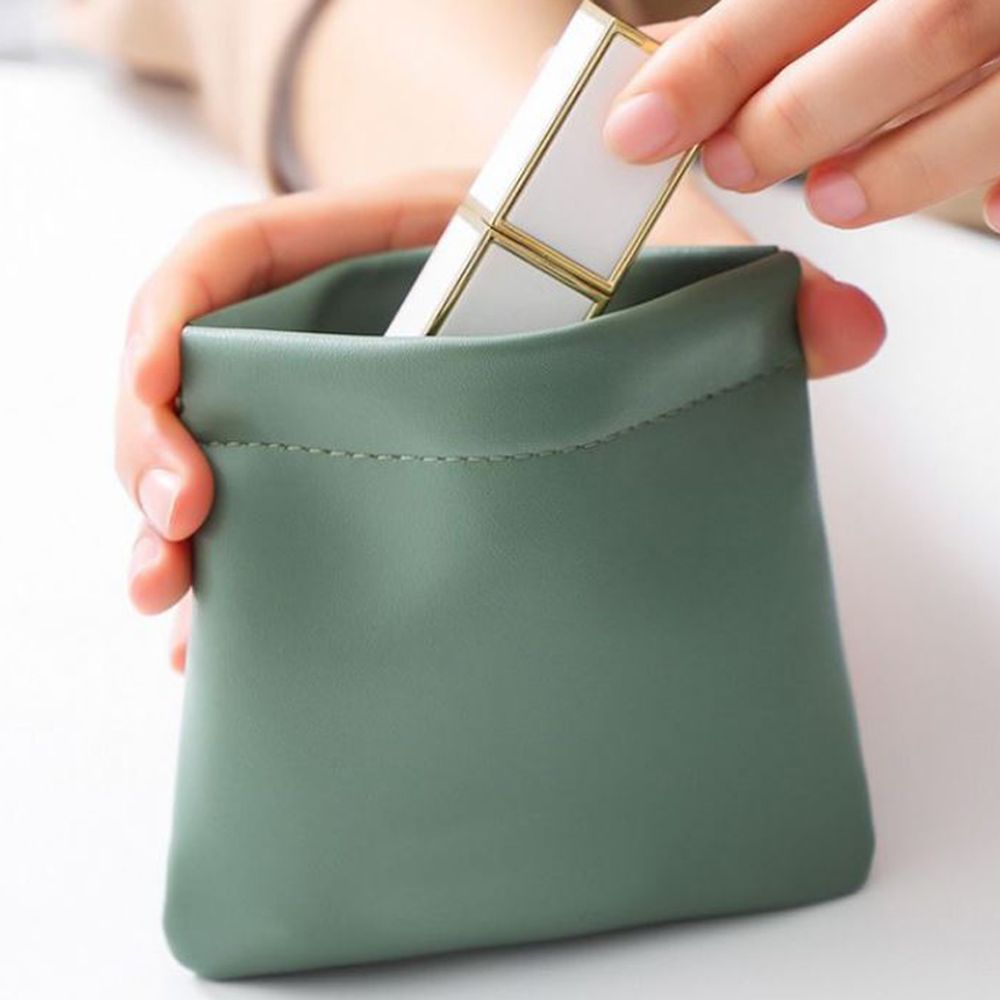 자석 잠금 가죽 파우치 이어폰 동전 화장품 수납 포켓 가죽주머니 가죽파우치 가죽포켓