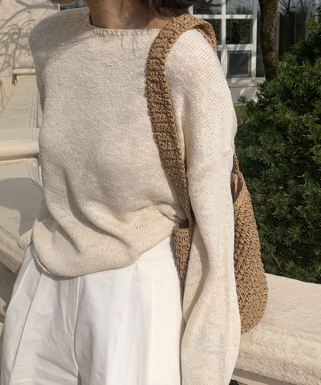 [얇은긴팔/살안타템] 데미안 슬라브 보트넥 그물 네트 루즈핏 커버업 긴팔 여름 니트
