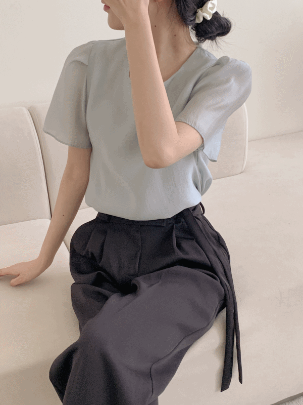 [🔥하객룩원탑/자체제작] 루블 라운드 퍼프 프릴 핀턱 반팔 여름 블라우스 시스루 오피스룩