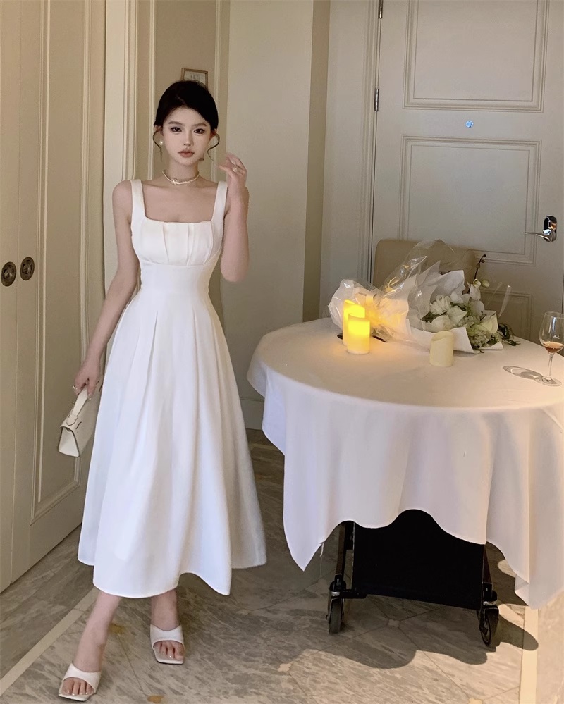 [당일출고] 항도 여름 셀프웨딩 브라이덜샤워 원피스 화이트 피로연 슬리브리스 스퀘어넥 나시 새틴 롱원피스