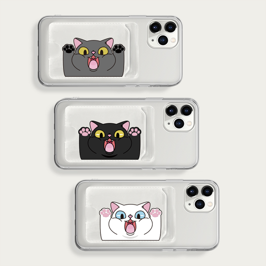[포켓젤리] 크앙냥 귀여운 동물 고양이 폰 케이스 아이폰 16 17 갤럭시 S24 S25 카드수납 커플 친구 선물