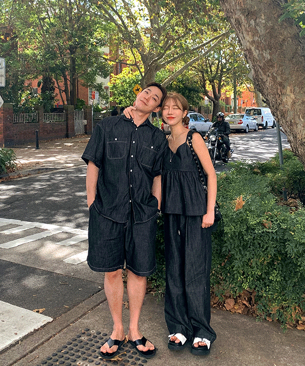 5천장돌파🔥 오늘출발 논페이드/2컬러/휴양지룩] 생지 청청 셔츠 세트 커플룩 시밀러룩