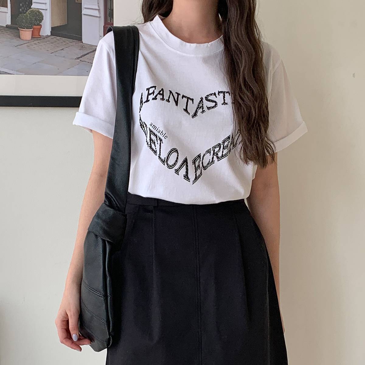 하트 레터링 반팔 여성 기본핏 티셔츠